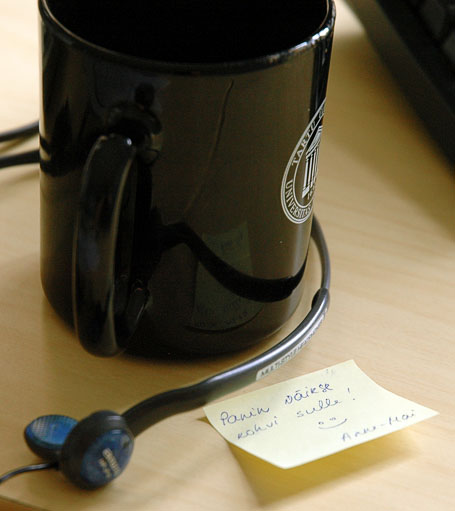 Meil õmbles meediasuhete juht täiesti ehtsa kohvikannusoojendaja. Punane ja triipudega ja pehme sooja hoidva alusega. Ei mingit külma kohvi enam :P